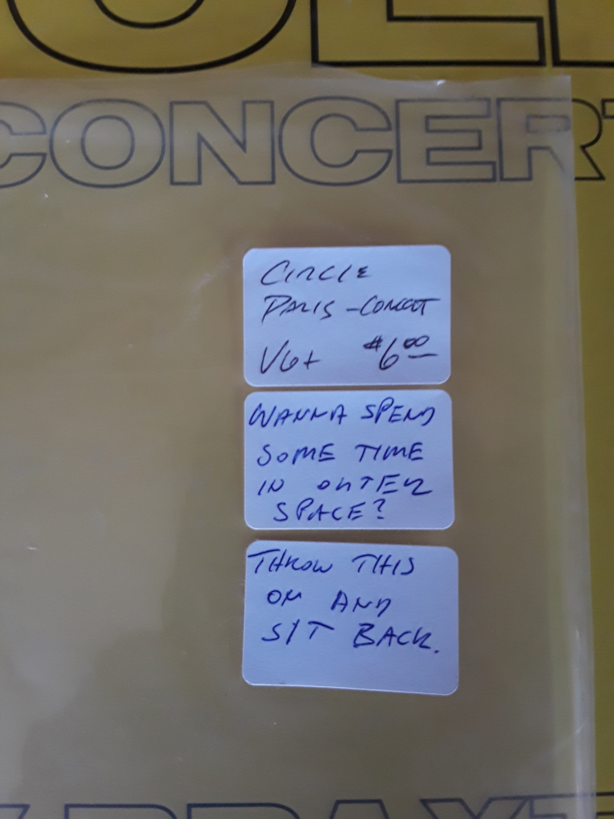 I went record shopping Friday after work. It had been a really sucky week so I needed to treat myself. In the used jazz section I found a copy of Paris Concert by Circle (Anthony Braxton, Chick Corea, Dave Holland, Barry Altschul). I was stoked. I was certain I didn’t own it. But I thought there was a chance I might. Luckily my wife’s schedule was different and she was home instead of teaching. So I texted her to see if I already had it. Yup, turns out I did. I had bought it years ago from my favorite store in the last city we lived. (One of the cool things about that store was for every LP with Braxton on it they’d add a sticker below the price/condition with a little note.) It’s a good thing I checked with my wife. I paid a paltry $6 for mine. The one I saw at the record store on Friday was in the same condition, but it was $14.95.